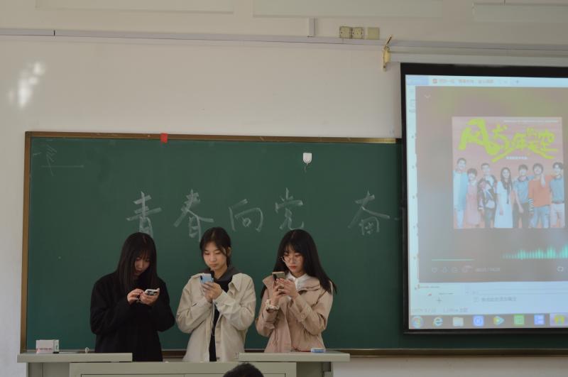 活动伊始,新转入班级的三位同学进行自我介绍,使大家对他们有了初步了解。紧接着,在深化党团教育方面,苏子涵同学呼吁大家青年一代与国家民族命运与共,青年一代更要茁壮成长,扛起时代重任,成为建设强国的中流砥柱。为生动地展现中国共产党建立过程的艰辛以及党员们无私奉献和英勇无畏的精神,韩雪、李星、王垠淞、杨悦文、宫赫励、张天悦、李燕卿七位同学为我们带来了原创方言配音作品《党的建立》。随后王子骏德吉措姆同学带来了诗朗诵《在路上》,讲述了革命先辈们筚路蓝缕、无怨无悔地在荆棘中跨越万水千山走上街头,参与抗战;接着刘奕彤、苏子涵、宫赫励同学用歌曲《风犬少年的天空》展现了青年一代永不服输的锐气和不言放弃的勇气。最后大家都对新同学送去了真挚的祝福,“愿你们快些融入我们的大家庭”、“有什么需要可以随时找我”这些真诚而又温暖的话语在拉近彼此距离的同时,也提高了班级的凝聚力。