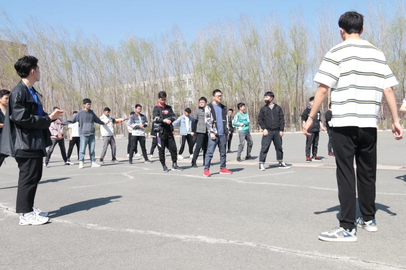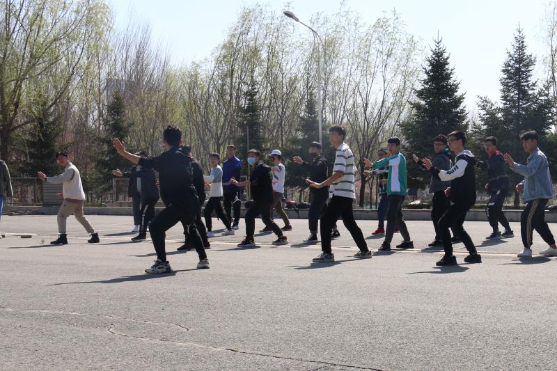 学生会文体活动部文艺组在溜冰场组织开展八极拳训练。XDXX