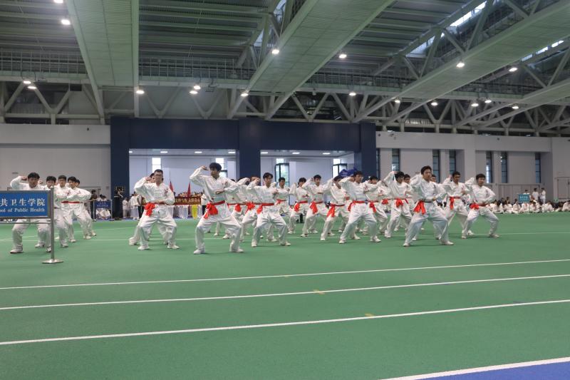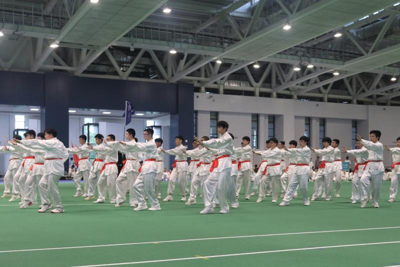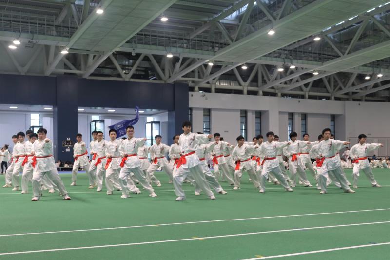 八极拳代表队来到了宋治平体育馆参加学校举办的八极拳展示比赛。