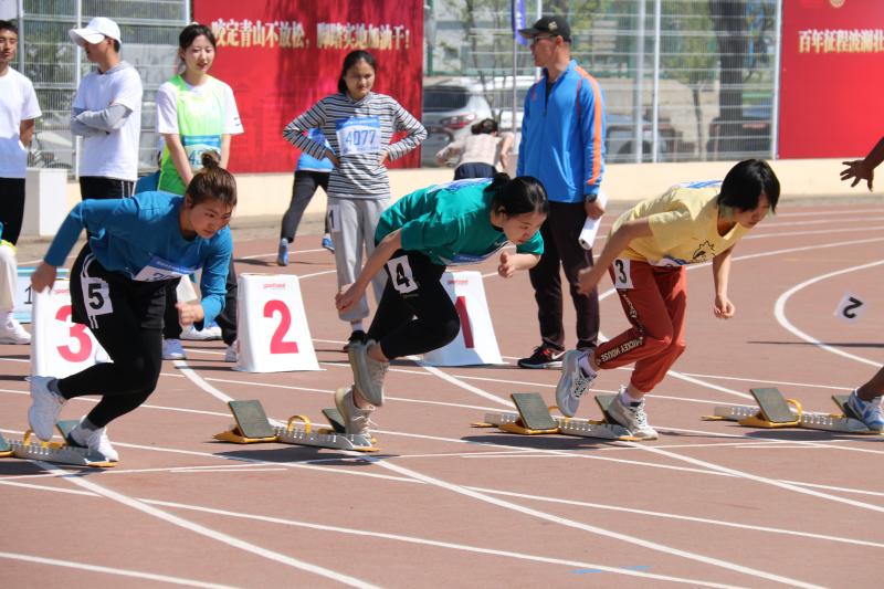 比赛还未开始,众多参赛运动员便已在赛场上集合。每位运动员都精神饱满、跃跃欲试。检录完毕,比赛正式开始。初加仪同学摆好预备姿势,随着发令枪响,只见她两腿快速全力蹬伸,身体向前上方运动,以迅雷不及掩耳之势冲了出去。在途中跑过程中,两臂协调摆动,两腿保持高步频,身姿矫捷。赛程最后,她保持高速,全力冲线,以14秒51的优秀成绩获得第一名。