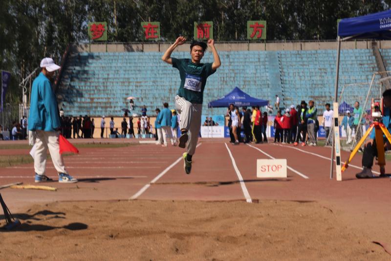 比赛开始前,庞玉琦同学提前充分热身,用最饱满的精神状态迎接比赛。比赛中,各学院参赛选手们依次上前,全力奔跑,腾空向前,争取为学院取得荣誉。庞玉琦同学也不甘示弱,每一次的跳跃都刷新了原有的成绩,即使在太阳的暴晒下,他也拼尽全力,永不放弃。然而很遗憾,庞玉琦同学最终未能获得奖牌,但是其坚持不懈的精神仍然值得学习!
