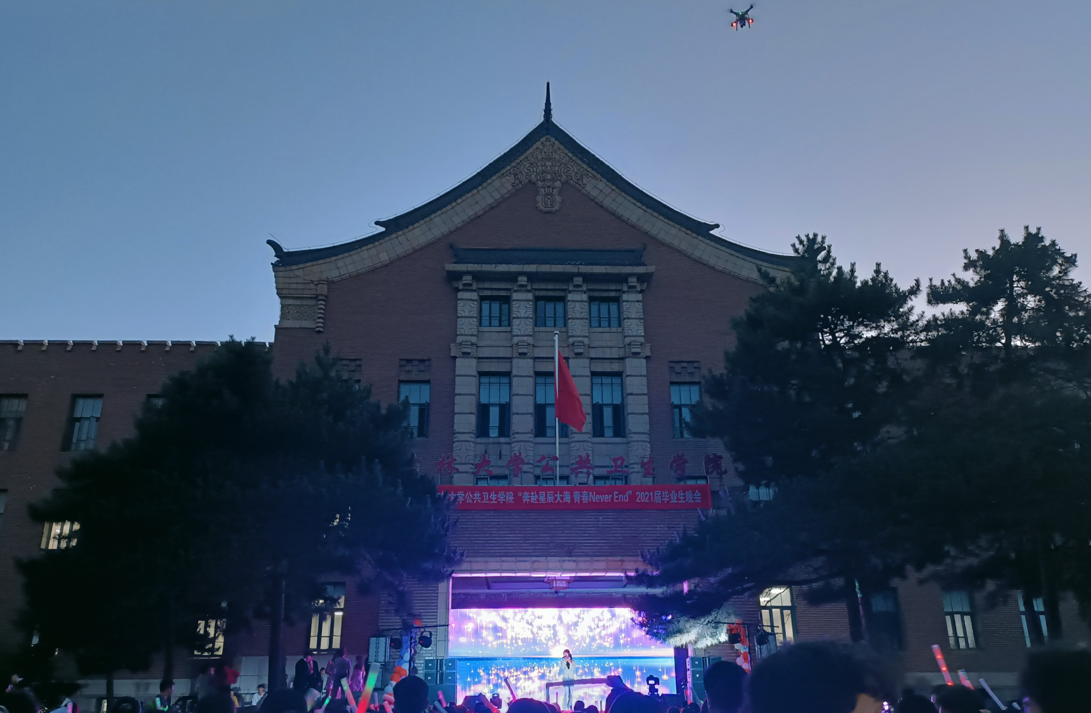 在办公楼前广场举办“奔赴星辰大海,青春Never End”2021届毕业生晚会。XDXX