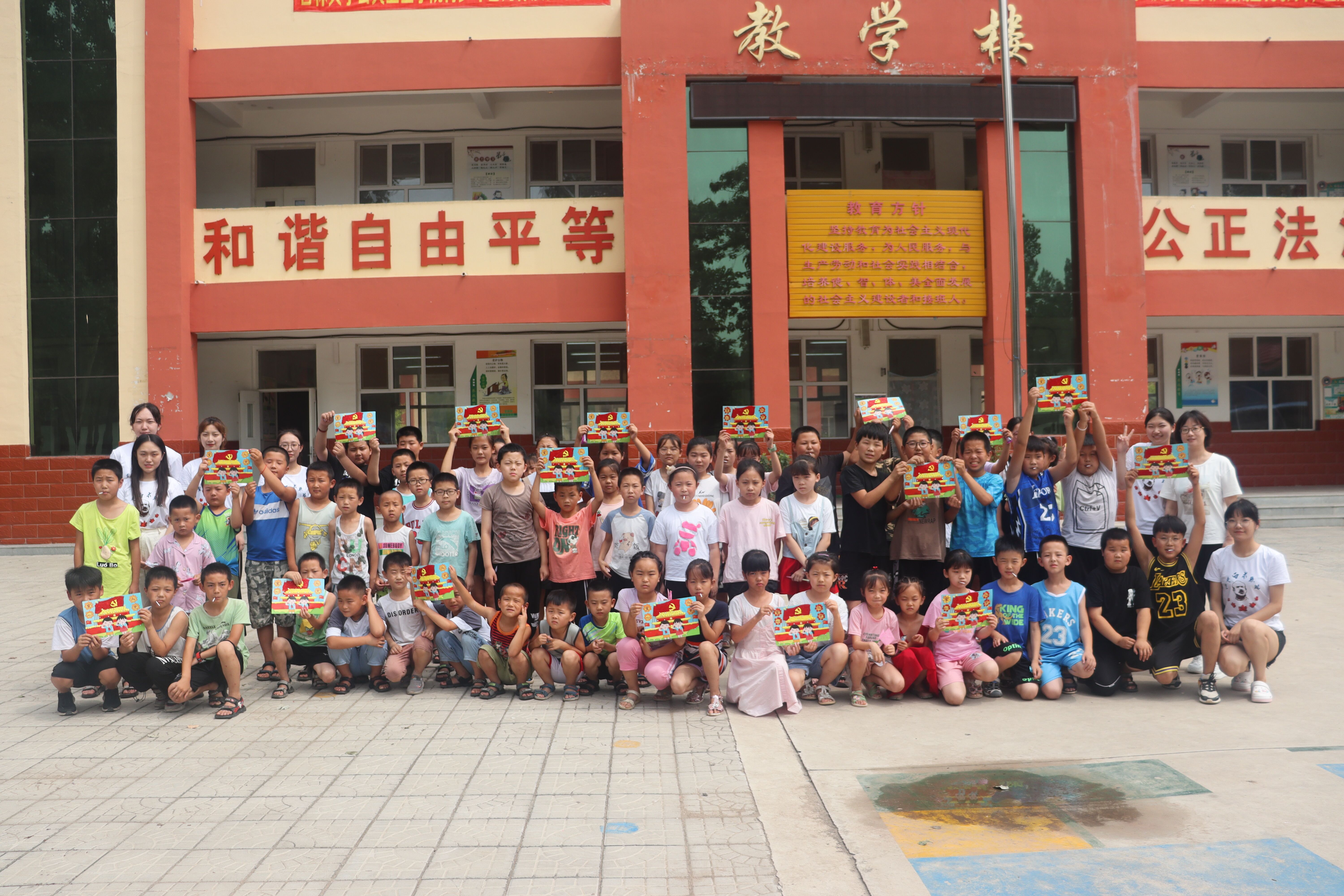 7月15日一早,葛公小学的校门口就聚集了一群活泼可爱的孩子们。他们很早就等候在了校门外,丝毫不知疲惫。有了之前一天的接触,孩子们卸下了防备,开心地与志愿者们聊天。他们精力无限,活泼、天真,他们会软糯地告诉你他们的名字,也会大声地向你提问。他们无所顾忌也会毫无保留,有些淘气却也真诚无私。他们的眼睛很干净,会看见对方很好的地方,也会互相指出不足,从不遮遮掩掩。葛公的孩子们用他们的善良和真实感染了每一名志愿者。今天的第一节课是党史课。两位志愿者首先向孩子们介绍了党史学习的要求、目标、作用,紧接着从红船往事、南昌起义、党史小故事几个方面向孩子介绍了中国共产党的光辉往事。最后,两位志愿者用小测验的形式检验孩子们的学习成果。