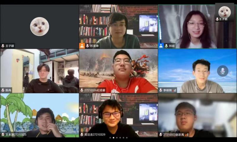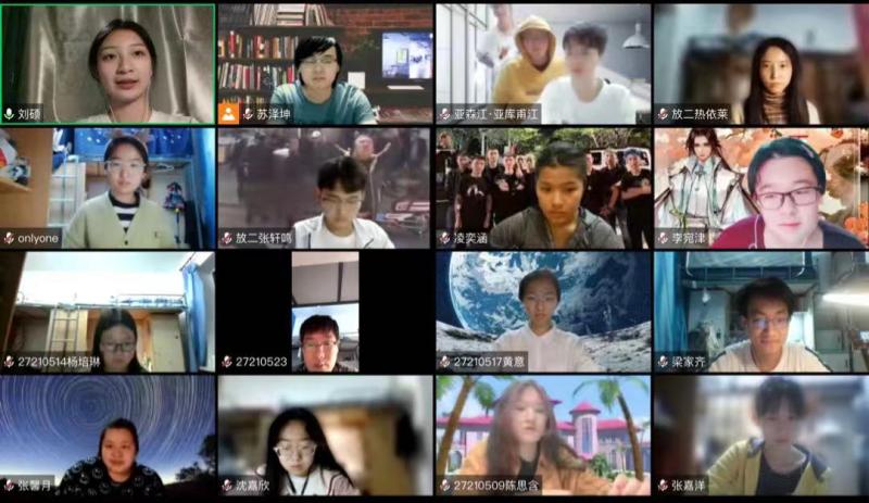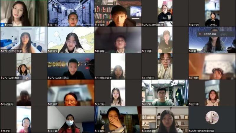 活动开始前,主持人通过对班会的主题进行简单的介绍,邀请同学们打开摄像头向许久未见的彼此问好,拉近了云端每位同学的心理距离。随后同学们在暖场小游戏“摇摆时钟”的进行下逐渐活跃了起来。大家热情分享了自己疫情期间的感受,有对来自吉大的投喂的感激,有对志愿者帮忙的感谢,也有对室友相互包容的感动.......其中不乏对走出寝室的期待和对伙食太好导致的体重增加的调侃,同学们纷纷表示同意,氛围温暖而又亲切。而对于疫情带来的教学安排的延期,同学们表示最初会有些迷茫,但已经逐渐适应了这样的节奏并规划好自己的日常生活。在班会的最后,心理部与大家分享了疫情期间调整情绪的小方法,鼓励同学们通过宅寝健身、线上KTV等方式丰富自己的课余生活,增进与同学的情感交流,活动圆满结束。