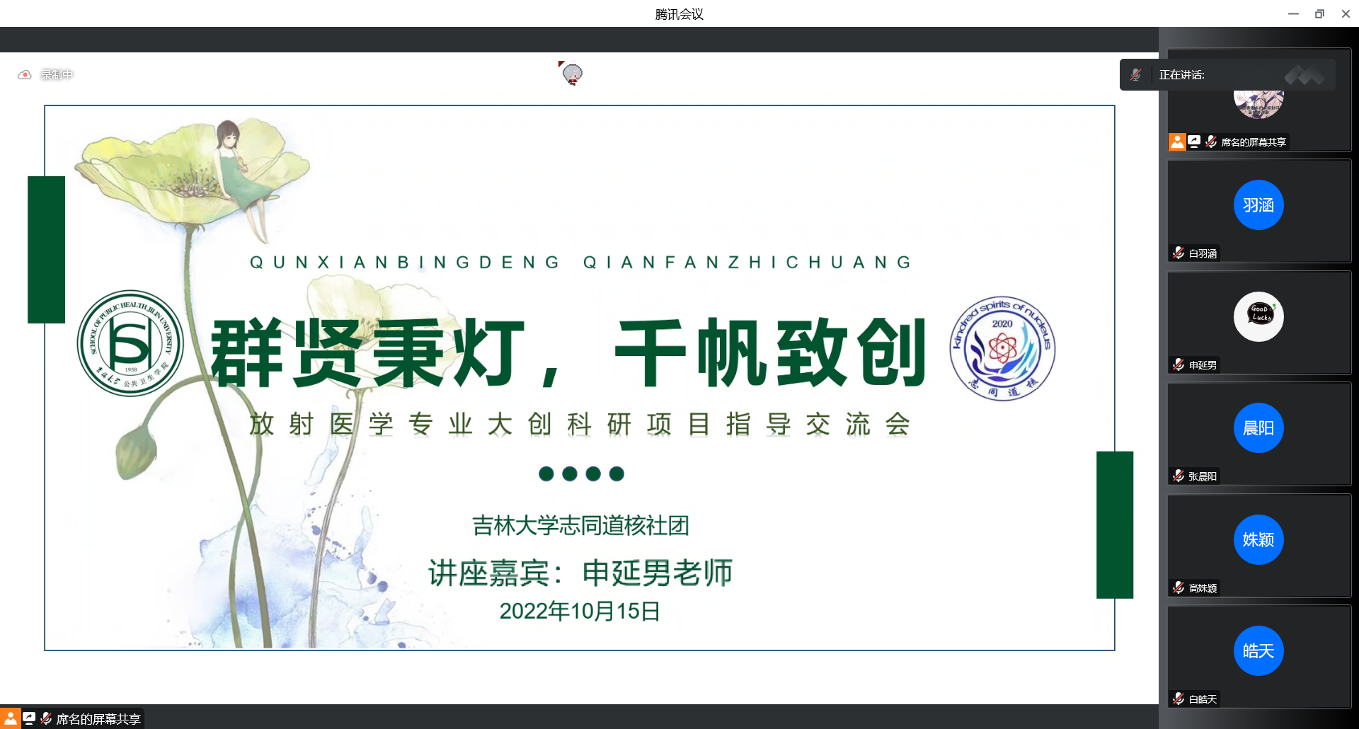 为帮助2021级、2022级放射医学专业同学深入了解大学生创新创业训练项目,搭建与导师沟通交流的平台,以便于日后大创项目的顺利开展,10月15日晚上七点,XDXX