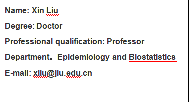 • 2015.09-present   School of Public Health, Jilin University, Professor