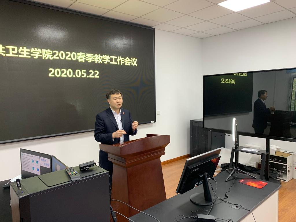 First of all, vice president Kou Changgui summarized the overall situation of online teaching of the college in the spring semester of 2020. This semester, the college undertakes 62 courses of each unit of the medical department, a total of 70 times, and the number of theoretical class hours is 1906. Except for one course due to restrictions, all courses are online, and students' satisfaction with the teaching effect of the courses is above 85%. At the same time, it points out the shortcomings of online teaching in our hospital, and requires all teaching and research departments and teaching teams to actively carry out curriculum improvement, do a good job in curriculum design and teaching reform, meet the needs of the development of public health discipline, promote the construction of innovative demonstration courses and produce high-quality online curriculum resources.