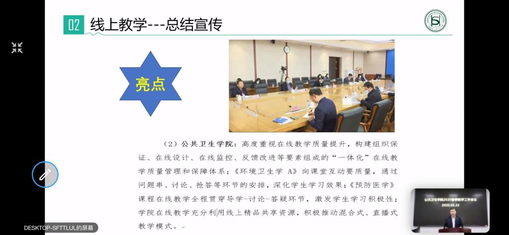 During the epidemic period, in order to implement the requirements of "no class, no class, no teaching" and ensure the quality of teaching, the school of public health held a spring semester online teaching working meeting on May 22, 2020, with all teachers and experimental technicians attending the meeting.