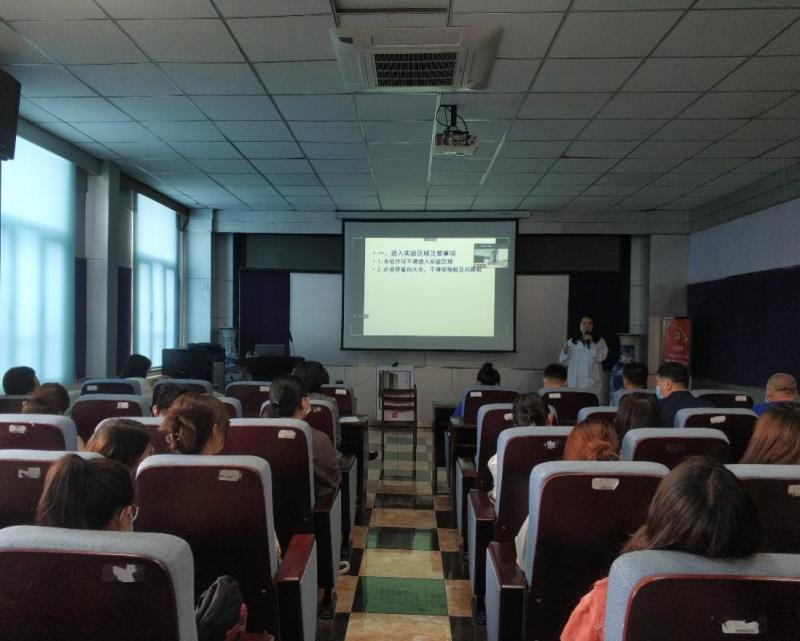 In order to improve students' awareness of experimental safety and strengthen experimental safety management, our college held a lecture on laboratory safety training in the conference hall on the third floor of our college on the afternoon of June 3. Mr. Zhao Shuhua of preventive medicine experimental teaching center and Mr. Zhen Qing of epidemiology and health statistics teaching and Research Office were invited to explain laboratory safety precautions and protective measures to all graduate students (Masters and doctors) of natural sciences in our hospital. In response to the novel coronavirus pneumonia control requirements, the seminar is divided into two parts: online and offline.