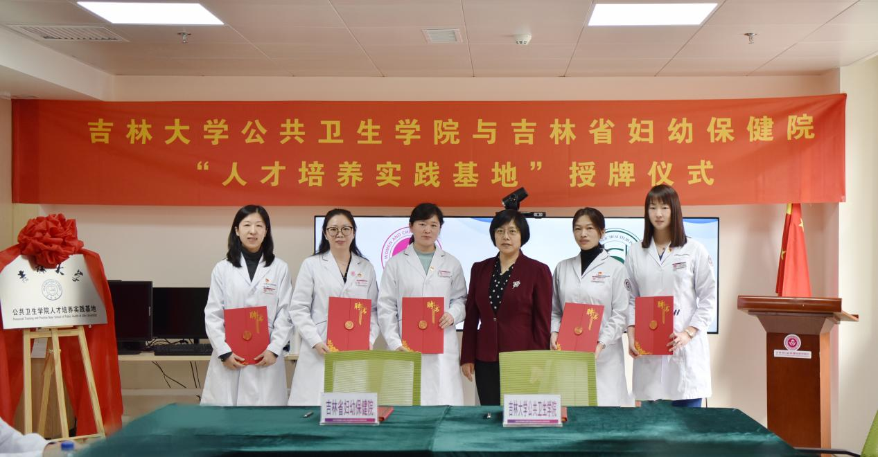 In order to strengthen and standardize the practical teaching work of the college, cultivate students' practical abilities and innovative awareness, and comprehensively improve the quality of teaching and talent cultivation, on the afternoon of March 21st, the signing and awarding ceremony of the talent cultivation practice base jointly built by the School of Public Health of Jilin University and Jilin Maternal and Child Health Hospital was successfully held at Jilin Maternal and Child Health Hospital. Attending this ceremony were Shen Wensheng, the Secretary of the Party Committee of Jilin Maternal and Child Health Hospital, Dong Xiaobin, the Dean, and Sun Zhiyong, the Vice Dean. Zhao Guoli, the Secretary of the Party Committee of the School of Public Health, Liu Yawen, the Dean, Kou Changgui, the Vice Dean, Yu Xihe, the Graduate Commissioner, and relevant department heads from both parties. The ceremony was presided over by Dong Xiaobin, the director of the Maternal and Child Health Hospital.